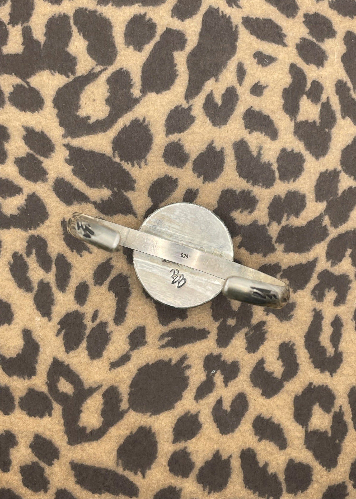 Handmade in California by Bog-Art-Studio, this retro-inspired cuff bracelet features an authentic 8-ball piece set in a sterling silver serrated bezel with beaded deco wire detailing. The adjustable cuff ensures a comfortable fit, blending vintage billiard charm with timeless style. Symbolizing strategy, precision, fate, and bold decisions, the 8-ball is a reminder to trust your instincts. This unique bracelet is a statement of confidence, skill, and fortune, perfect for pool enthusiasts and risk-takers.