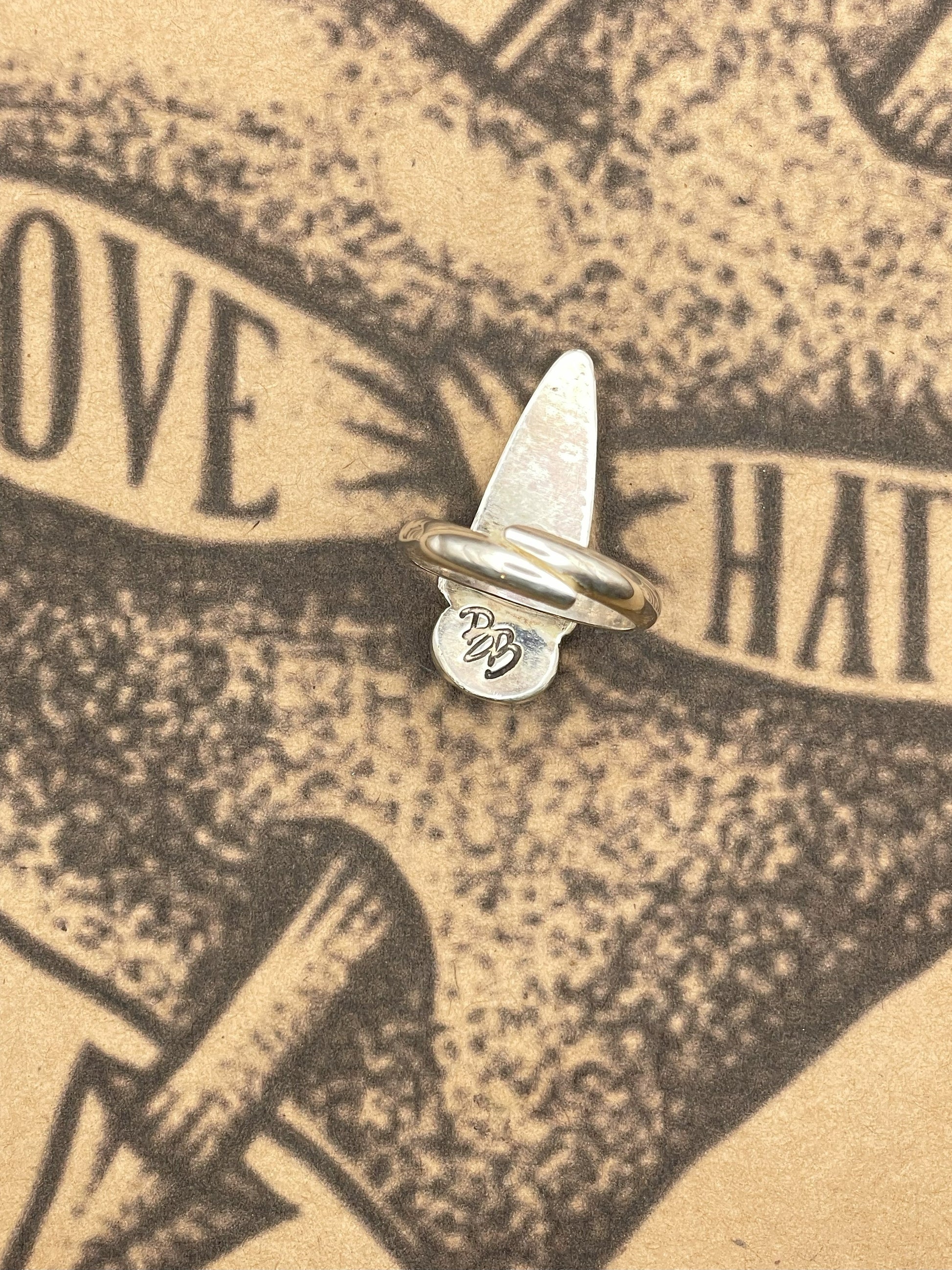 Handmade in California, this one-of-a-kind sterling silver ring features two beautiful boulder opal gemstones, each set in a sterling silver sleek bezel. Opal is a captivating gemstone prized for its brilliant play of color, known as opalescence or play-of-color. It has been cherished across cultures as a symbol of creativity, mystery, and emotional expression.