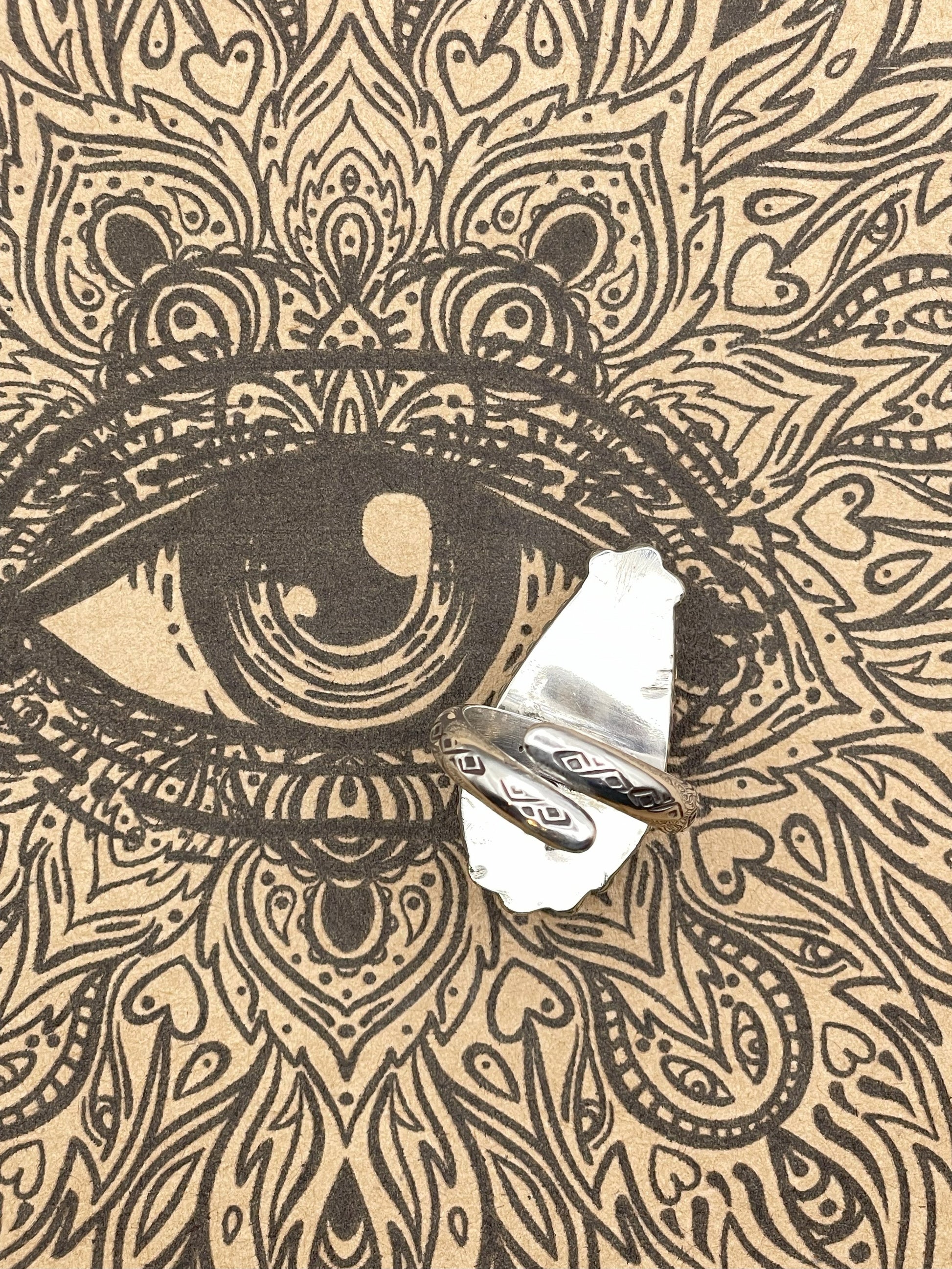 Handmade in California, this one-of-a-kind sterling silver ring features a beautiful Moonstone, set in a sterling silver intricate bezel and framed by twisted deco wire and silver balls detail for an elegant, handcrafted touch. This unique design highlights the beauty and timeless appeal of moonstone, making it a meaningful and stylish statement piece. Moonstone is a gemstone known for its ethereal glow, called adularescence, which gives it a soft, moonlight-like sheen. It has been revered for centuries and carries deep symbolic meaning across cultures.